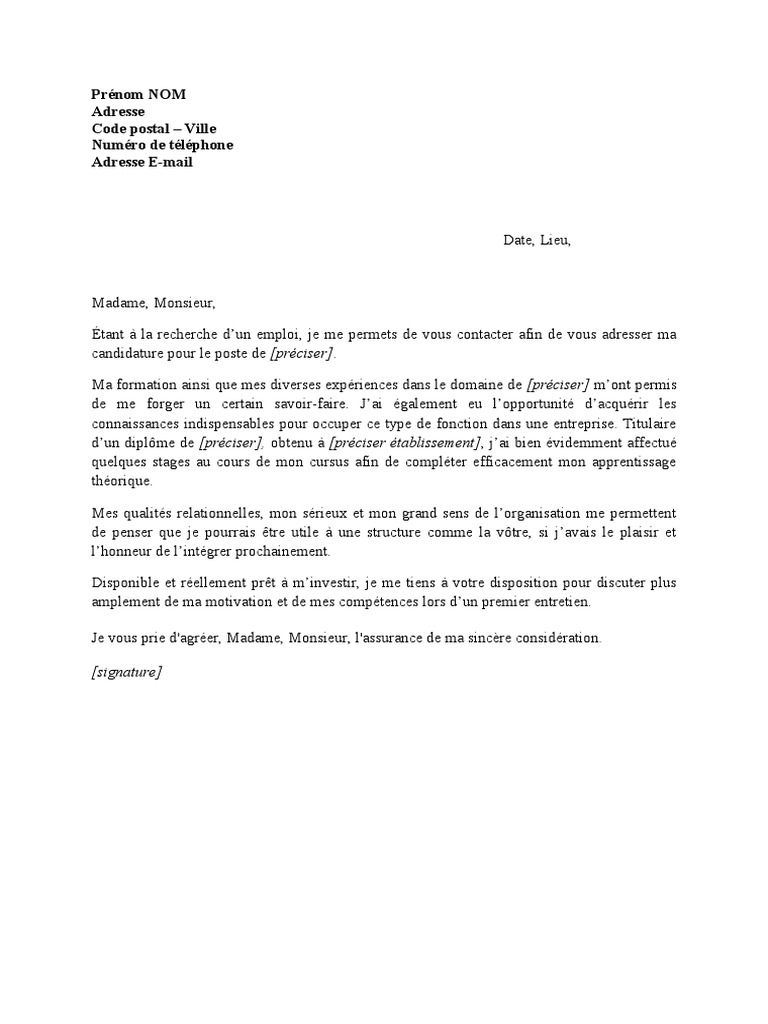 Évitez les phrases banales du type « cher monsieur. Les formules passives sont donc à éviter : Il existe différents types de lettres de motivation en fonction du poste ou de la démarche effectuée une lettre de motivation doit compléter, et non dupliquer, votre curriculum vitae. Une lettre de motivation simple et courte est un très bon élément pour gagner des points et décrocher un entretien. Des exemples de lettre de motivation à télécharger gratuitement.